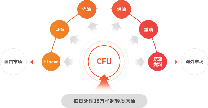 以凝析油(超轻质油)为原料,以炼制设施-CFU(Condensate Fractionation Unit)和